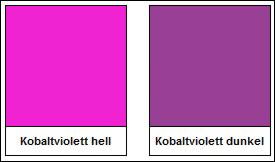 Kobaltviolett (veraltet auch Kobaltbronze) bezeichnet violette Farbpigmente, die Salze des Metalls Kobalt sind. Alle Arten von Kobaltviolett sind vollkommen lichtecht und von überragendender Farbreinheit. Staub von Kobaltsalzen ist krebserregend, wenn er eingeatmet wird, ansonsten sind die heute verwendeten, arsenfreien Kobaltviolett-Pigmente vergleichsweise harmlos. Als Bezeichnung für Malerfarben umfasst der Begriff auch mit synthetischen Farbmitteln imitierte Farben. Dunkles Kobaltviolett ist chemisch Kobaltphosphat. Es wurde 1859 entdeckt und ist bis heute in Gebrauch. Es ist nicht alkalibeständig, sonst aber das leistungsfähigste und intensivste Violett-Pigment. Helles Kobaltviolett (früher auch Kobaltrosa), dessen Farbton schon eher ein bläuliches Rosa ist, war ursprünglich Cobaltarsenat, als Mineral Erythrin, und wurde um 1800 entdeckt. Es war eines der giftigsten Pigmente. Daher wurde es zunehmend durch andere Kobaltsalze ähnlichen Farbtons ersetzt. |