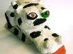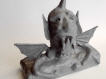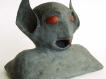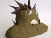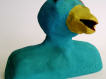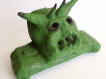 Auf einer Grundplatte (Holz, dicke Pappe) wurde zunächst mit Zeitungspapier, Eierkartons, Styroporverpackung und sonstigen Materialien eine Grundform aufgebaut, die mit Klebeband (Papier, Tesa) und Blumendraht fixiert wurde. Die Augenhöhlen und sonstigen konkaven Formen wurden eingedrückt oder herausgeschnitten. Dann begann der schichtweise Aufbau von unten nach oben mit einer Holzmodelliermasse (Plastika). Alternativ wäre auch Pappmaché geeignet (billiger!). Mit gerolltem, gefaltetem oder gedrehtem Papier wurden noch letzte Ergänzungen angefügt und ebenfalls überformt.