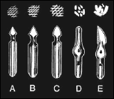 Hinweise: Das Wachs lässt sich auch verflüssigt mit dem Pinsel aufstreichen oder mit einem erwärmten Spachtel über das Papier ziehen. Legt man zuvor eine Untermalung mit Wasserfarben oder Filzstiften an, so werden beim Kratzen keine weißen, sondern farbige Striche sichtbar. Das sieht besonders ansprechend aus bei der Darstellung eines Feuerwerks!Die Untermalung kann auch mit Wachsmalstiften farbig oder weiß erfolgen. Dadurch werden die Tonwertabstufungen noch zarter, die Übergänge feiner. Ein nachträgliches Polieren steigert diesen Effekt. |
