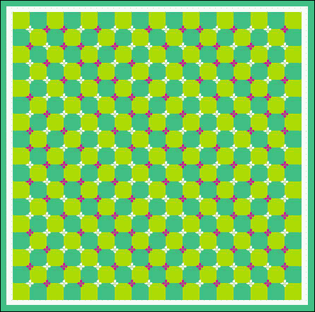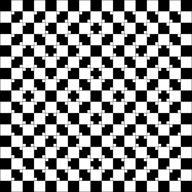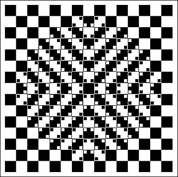 Das Quadrat im Bild oben besteht aus schachbrettartig angeordneten dunklen und hellen Teilquadraten. In einigen der dunklen Teilquadrate sind die Ecken durch kleine helle Quadrate gestört. Es entsteht der Eindruck, als seien die – nachweislich geraden – Trennlinien zwischen den Teilquadraten wellenförmig gekrümmt. Dabei spielt deren Helligkeit und Dicke eine wesentliche Rolle.