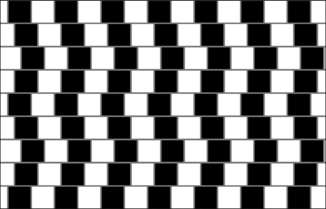 Im Beispiel oben scheinen die gestreiften Querbalken keilförmig zu sein – in Wahrheit sind alle horizontalen Linien exakt parallel, und die Querstreifen sind Rechtecke.