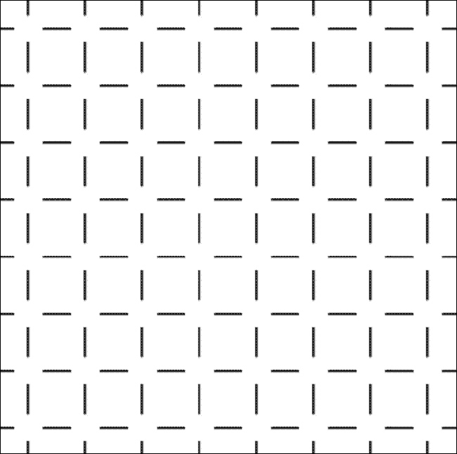 Bei manchen Sinneseindrücken glaubt der Betrachter Objekte wahrzunehmen, die nicht vorhanden sind. Ein Beispiel dafür ist das Muster oben aus durchbrochenen Linien. Der Betrachter glaubt an den Schnittstellen weiße Scheiben zu sehen.