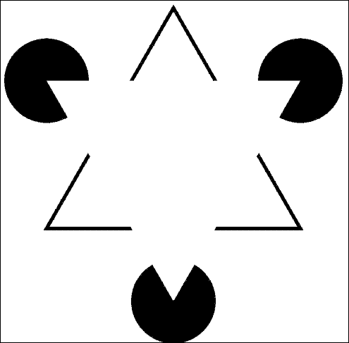 Beim Kanizsa-Dreieck (benannt nach Gaetano Kanizsa) glaubt der Betrachter, ein weißes Dreieck zu entdecken, obwohl das Bild nur Linien und Kreissegmente zeigt. Die gedachten Linien sind in der Literatur auch als "kognitive Konturen" (cognitive contours) bekannt geworden.