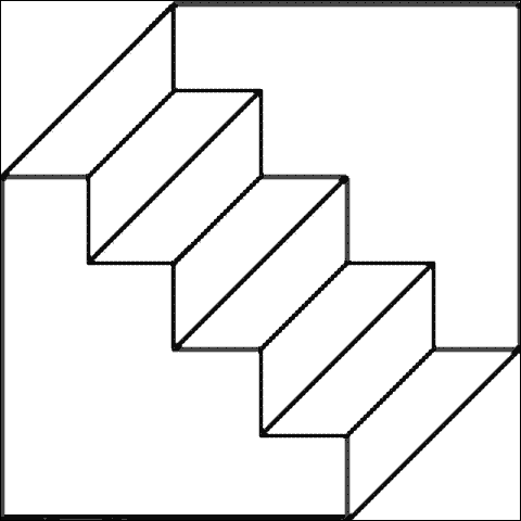 Die 1858 von Heinrich Georg Friedrich Schröder (1810–1885) publizierte Schröder-Treppe zeigt ebenfalls zwei perspektivische Orientierungen.