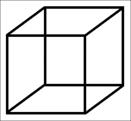 Kippfiguren wie der Necker-Würfel sind ein Beispiel für multistabile Wahrnehmung. Dabei bestimmt die Erfahrung die Lage, in der die Figur vorzugsweise wahrgenommen wird. Die Zeichnung stellt anscheinend das Gittermodell eines Würfels dar. Die beiden großen, sich überschneidenden Quadrate können dabei jeweils sowohl Vorder- als auch Rückseite sein. Somit erkennt man je nach Fokussierung einen links unten beginnenden Würfel, auf den man von rechts oben draufsieht, oder einen rechts oben befindlichen Würfel, den man von links unten betrachtet.