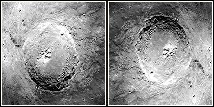 Viele Betrachter erkennen im linken Teilbild einen Hügel, rechts einen Krater. Dennoch handelt es sich um dasselbe Bild, lediglich um 180° gedreht. Die Interpretation beruht auf der Erfahrung, dass Objekte oft von oben beleuchtet werden. Ein heller Rand oben legt eine Anhöhe nahe, ein dunkler Rand unten einen Schatten, hervorgerufen durch einen abfallenden Hügel. Im zweiten Teilbild ist es genau umgekehrt.