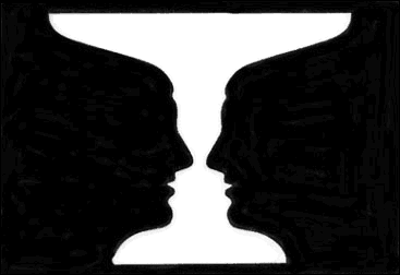 Das Pokalprofilmuster zeigt entweder zwei schwarze, sich anschauende Gesichter oder einen Pokal (jeweils im Profil). Dieses Beispiel wird dem dänischen Psychologen Edgar J. Rubin (1886-1951) zugeschrieben.