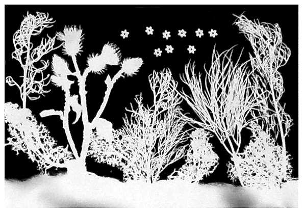 Hinweise: Diese Technik hat schon Corot im 19. Jahrhundert ausprobiert! Sie ist sicher auch heute noch interessant und lässt viefältige kreative Experimente zu. Kombinieren Sie z.B. das Malen mit lichtempfindlichen Farben und das Freikratzen. Die Arbeit mit farbigem Fotopapier lohnt nicht mehr. Kolorieren Sie die Ergebnisse per Hand, scannen Sie diese ein und bearbeiten Sie sie am Computer!